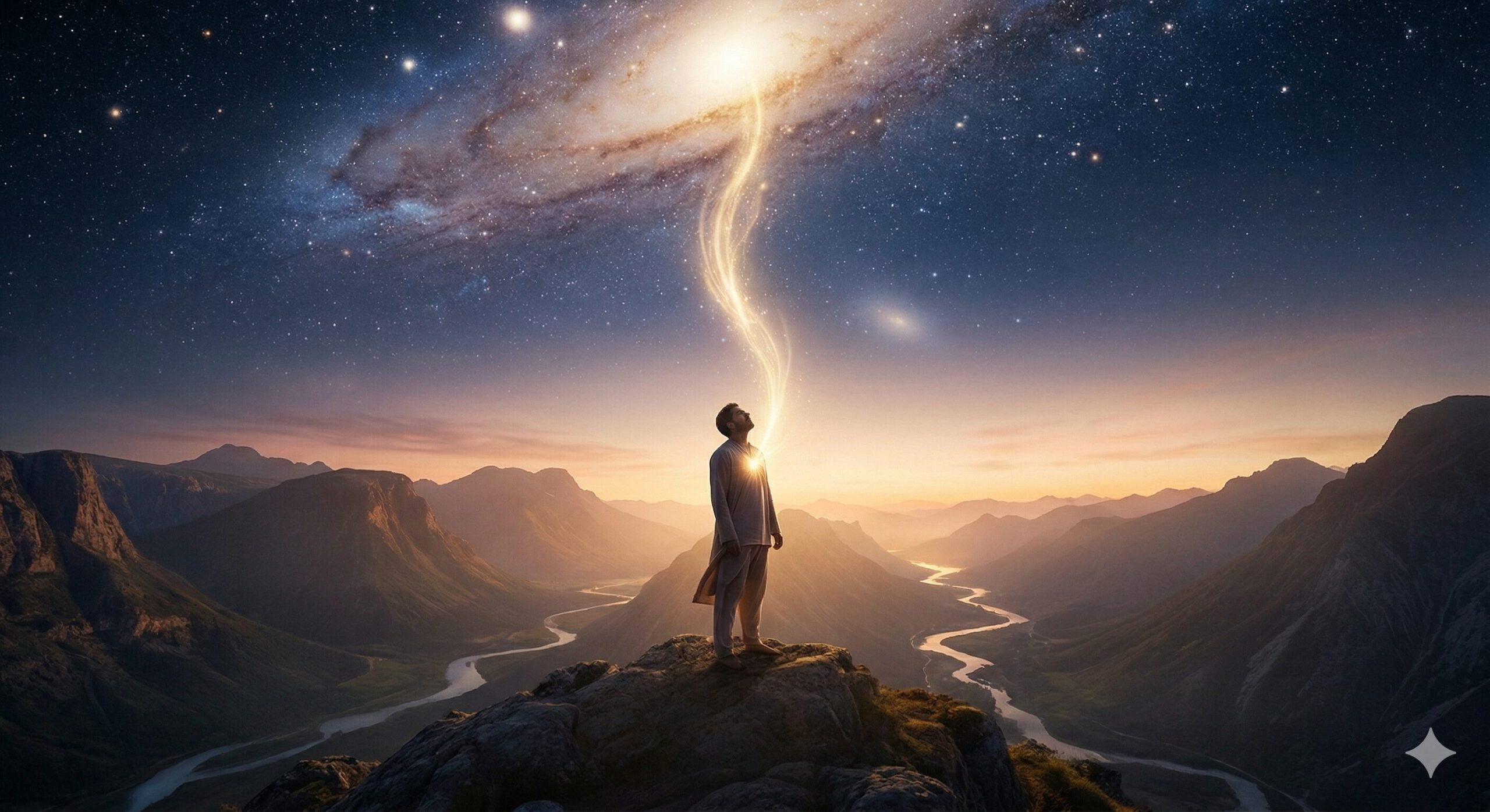 - Der Glaube an einen Schöpfer erhebt den Menschen vom banalen zum erhabenen. Glaube eröffnet die Türen zur menschlichen Vervollkommnung und der Mensch begreift sein Platz im Universum.